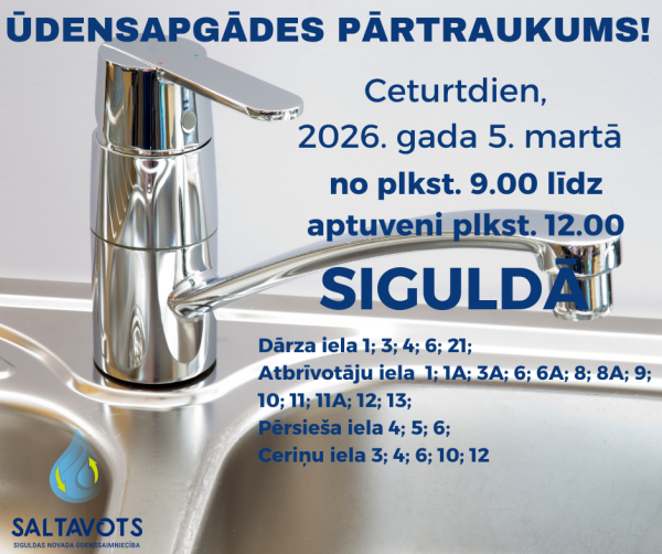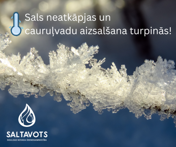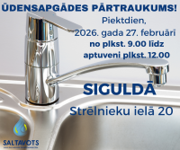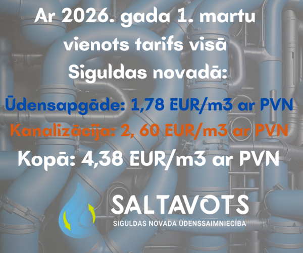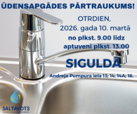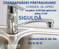 Avāriju gadījumos ārējos ūdensvada un kanalizācijas tīklos (visu diennakti) zvanīt: