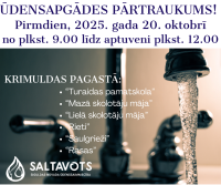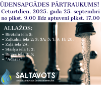 Plānotais ūdensapgādes pārtraukums no trešdienas, 24. septembra, pārcelts uz ceturtdienu, 25. septembri, kad pārtrauks ūdensapgādi atsevišķiem nekustamajiem īpašumiem Allažos!