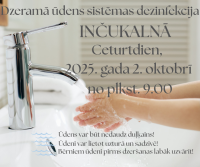 Ceturtdien, 2. oktobrī, Inčukalnā veiks divu dzeramā ūdens rezervuāru izmazgāšana un dezinfekcija, un dzeramā ūdens hidroforu attīrīšana un dezinfekcija!