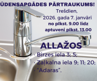 Trešdien, 7. janvārī, pārtrauks ūdensapgādi atsevišķiem nekustamajiem īpašumiem ALLAŽOS!