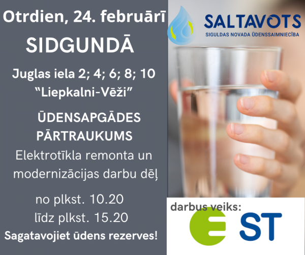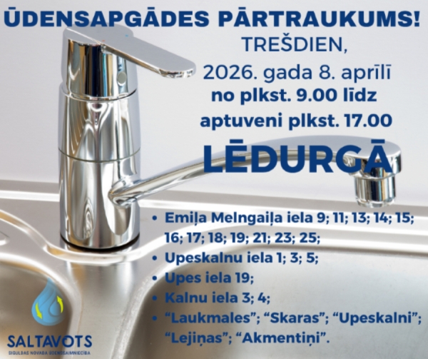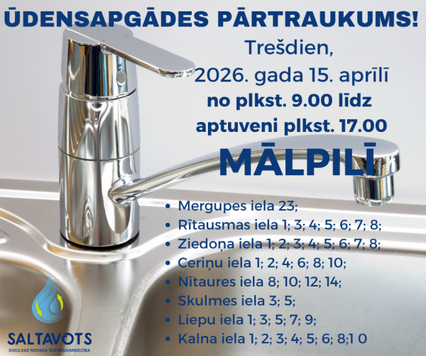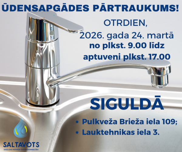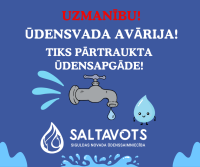 Avāriju gadījumos ārējos ūdensvada un kanalizācijas tīklos (visu diennakti) zvanīt: