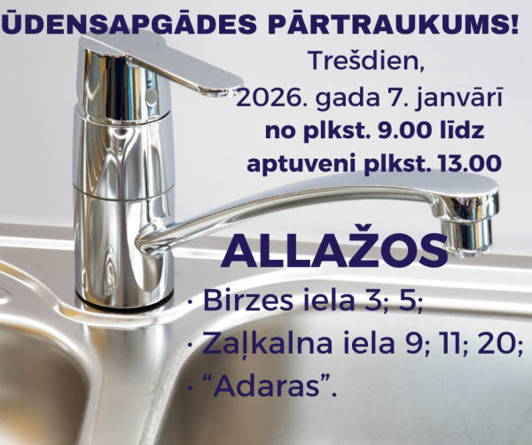 Avāriju gadījumos ārējos ūdensvada un kanalizācijas tīklos (visu diennakti) zvanīt: