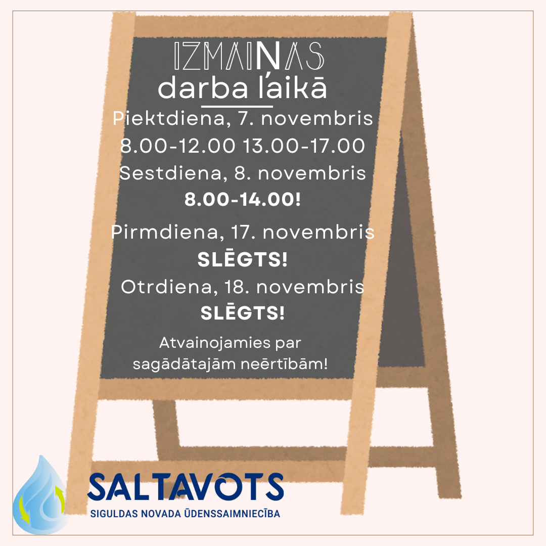 Jūsu iesniegtos datus apstrādās pārzinis – SIA “SALTAVOTS”, juridiskā adrese – Lakstīgalas iela 9B, Sigulda, Siguldas novads, LV-2150, iesnieguma izskatīšanas (lietvedības vadīšana) nolūkam. Papildu informāciju par minēto personas datu apstrādi var iegūt www.saltavots.lv/Privātuma politika vai iepazīstoties ar to klātienē SIA “SALTAVOTS” klientu daļā.